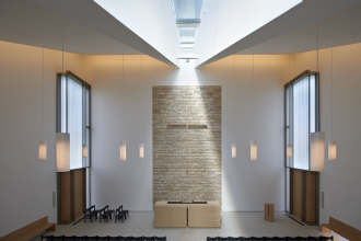 In Germania, un edificio moderno, senza concessioni alla tipologia tradizionale degli edifici di culto. Nessun campanile né altri elementi architettonici. Toni neutri e tanta luce