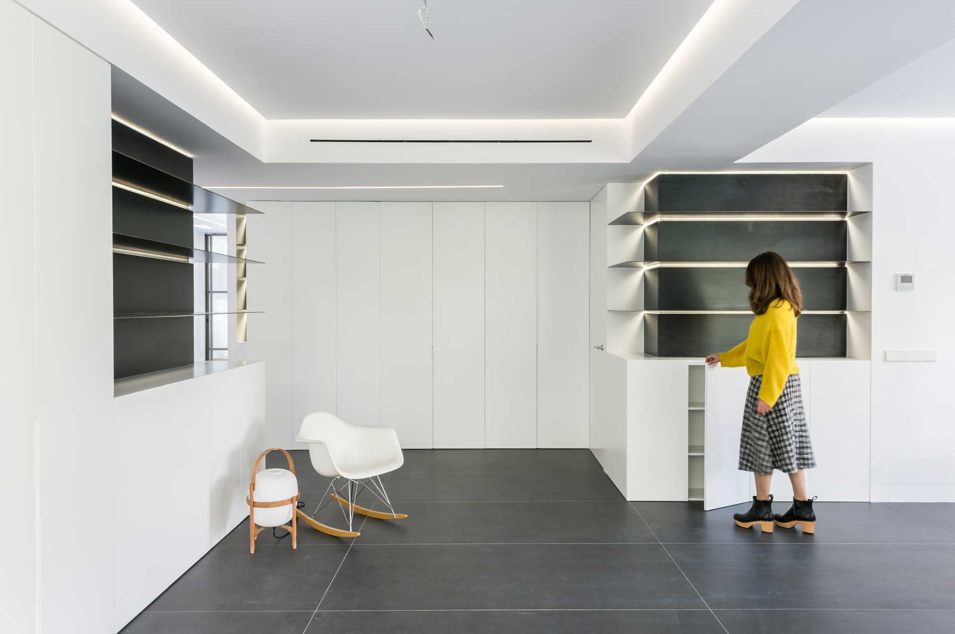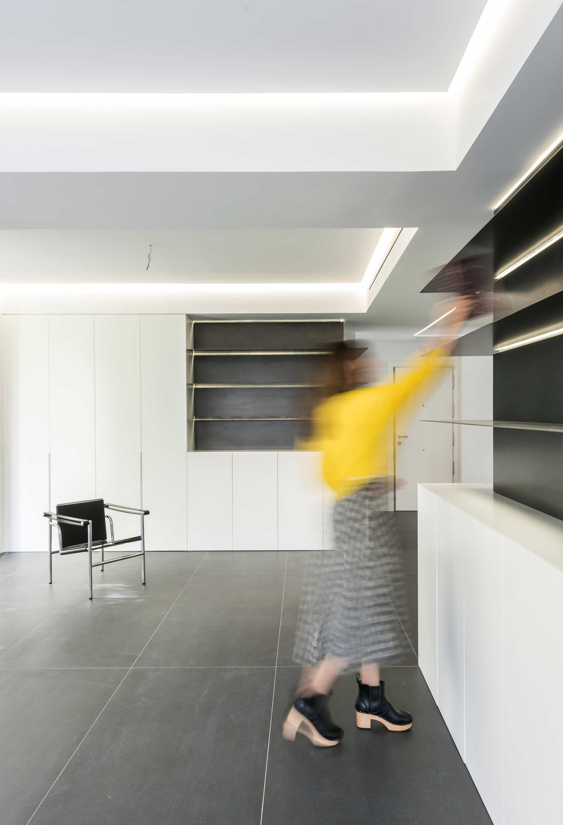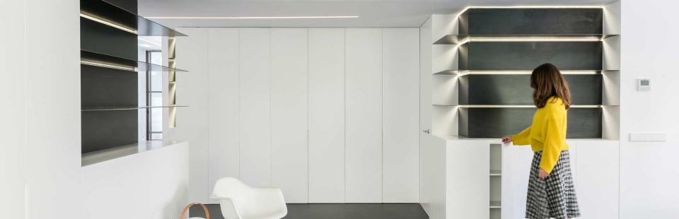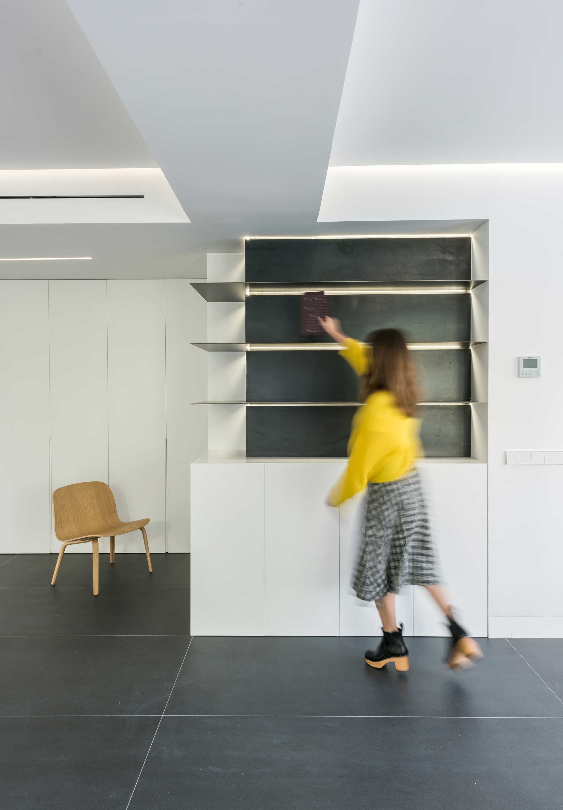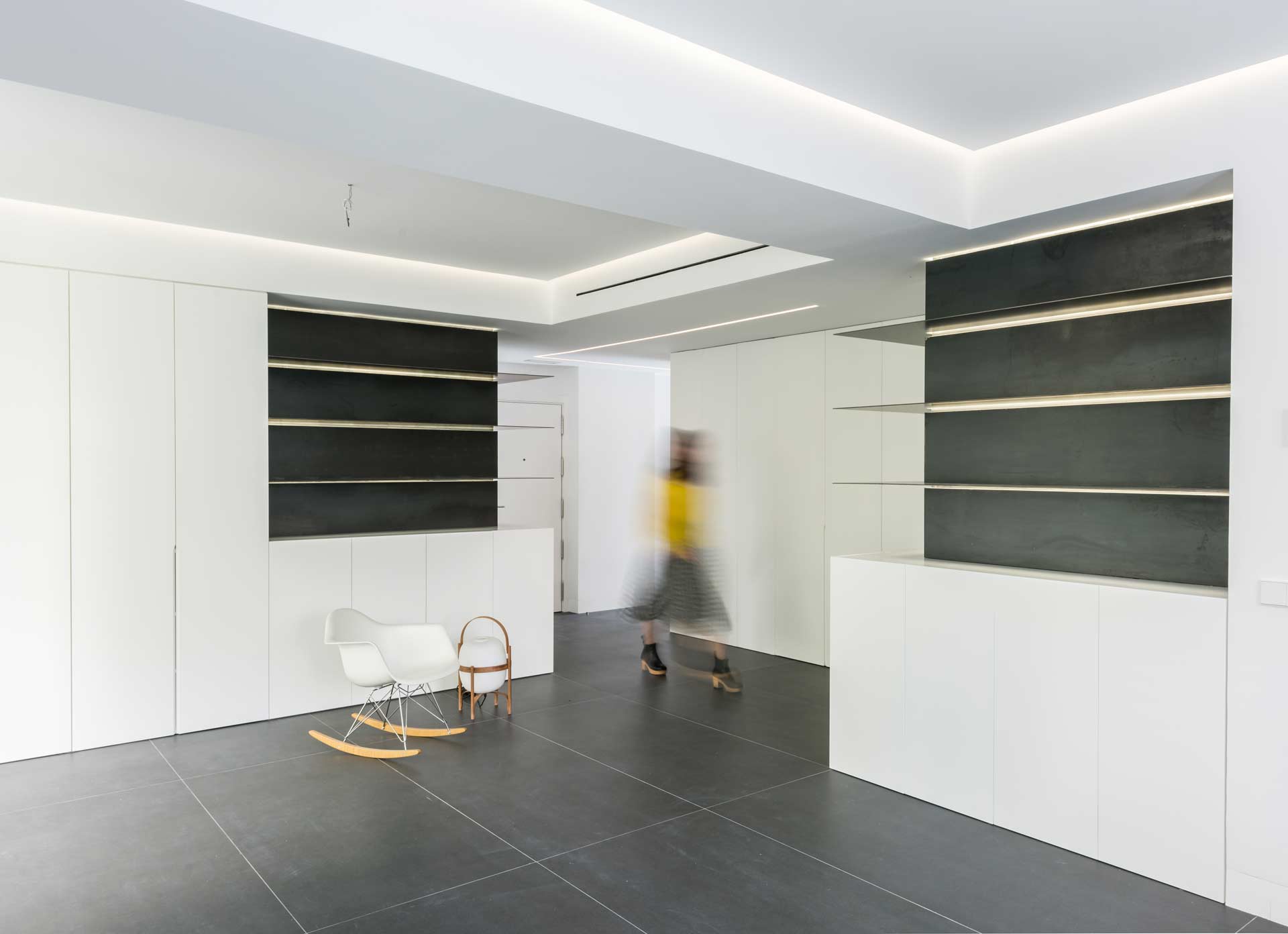 Si chiama Casa Jiloca come la Comarca del Jiloca, attraversata dall'omonimo fiume che scorre nella parte centro orientale della Spagna e nel suo DNA, oltreché nel nome, c'è sicuramente una connotazione culturale. Fino al 2018, infatti, il suo aspetto era quello tipico delle case madrilene degli anni '70, le ”case figlie” dell'allora boom economico, in mattoni, lo stile di molti quartieri delle città spagnole. Un aspetto molto distante da quello che presenta oggi, alla luce del radicale restyling ad opera di Zooco Estudio. ”La riforma della casa è completa”, spiega Miguel Crespo Picot di Zooco Estudio ”poiché si tratta di una casa originale degli anni '70 in cui niente era stato toccato da allora, quindi è stato necessario un cambiamento radicale. L'obiettivo principale era quello di generare un'estetica senza tempo e neutra attraverso la continuità dei rivestimenti e dei toni utilizzati”. L'intera casa è pavimentata con piastrelle di ceramica di grande formato in tono scuro, le lastre di gres porcellanato Buildtech/ 2.0 effetto cemento di Florim, mentre le pareti bianche continue includono contenitori nascosti dietro i pannelli laccati bianchi lungo il suo percorso. Nella zona nobile della casa il ripostiglio, nella sua parte superiore, si trasforma in un sistema di mensole metalliche rifinite al grezzo e retroilluminate. Il colore scuro del pavimento (tonalità Coal TU) è stato scelto per creare un contrasto forte con le superfici verticali delle pareti e degli armadi in bianco candido, una soluzione stilistica forte ma anche intramontabile nel tempo. E anche il formato delle lastre (60x120 cm, 10 mm di spessore) risponde a criteri estetici, al desiderio di creare continuità tra gli spazi: ”I clienti volevano liberarsi completamente della casa precedente, tappeti, decorazioni, ecc. e volevano un pavimento neutro e facile da pulire, motivo per cui ci siamo orientati su questo prodotto”, precisa l'architetto Picot. Nella stessa direzione vanno anche le altre scelte inerenti all'interior: i rubinetti di Tres, gli arredi per il bagno di Avila Dos compatti e lineari, gli apparecchi per l'illuminazione di Faro Barcelona, icona del design spagnolo, e di Rovasi per gli esterni, i termoarredi di Irsap. Un omaggio al design e una ricercatezza del minimalismo chiaramente espressi in ogni intervento sia strutturale che negli arredi e nelle finiture. Ma anche un esplicito desiderio di versatilità, dichiarato principalmente nel ricorso a prodotti e oggetti a bassa manutenzione (come le stesse lastre in gres dei pavimenti) e nella presenza di molteplici elementi contenitivi per tutti gli ambienti.