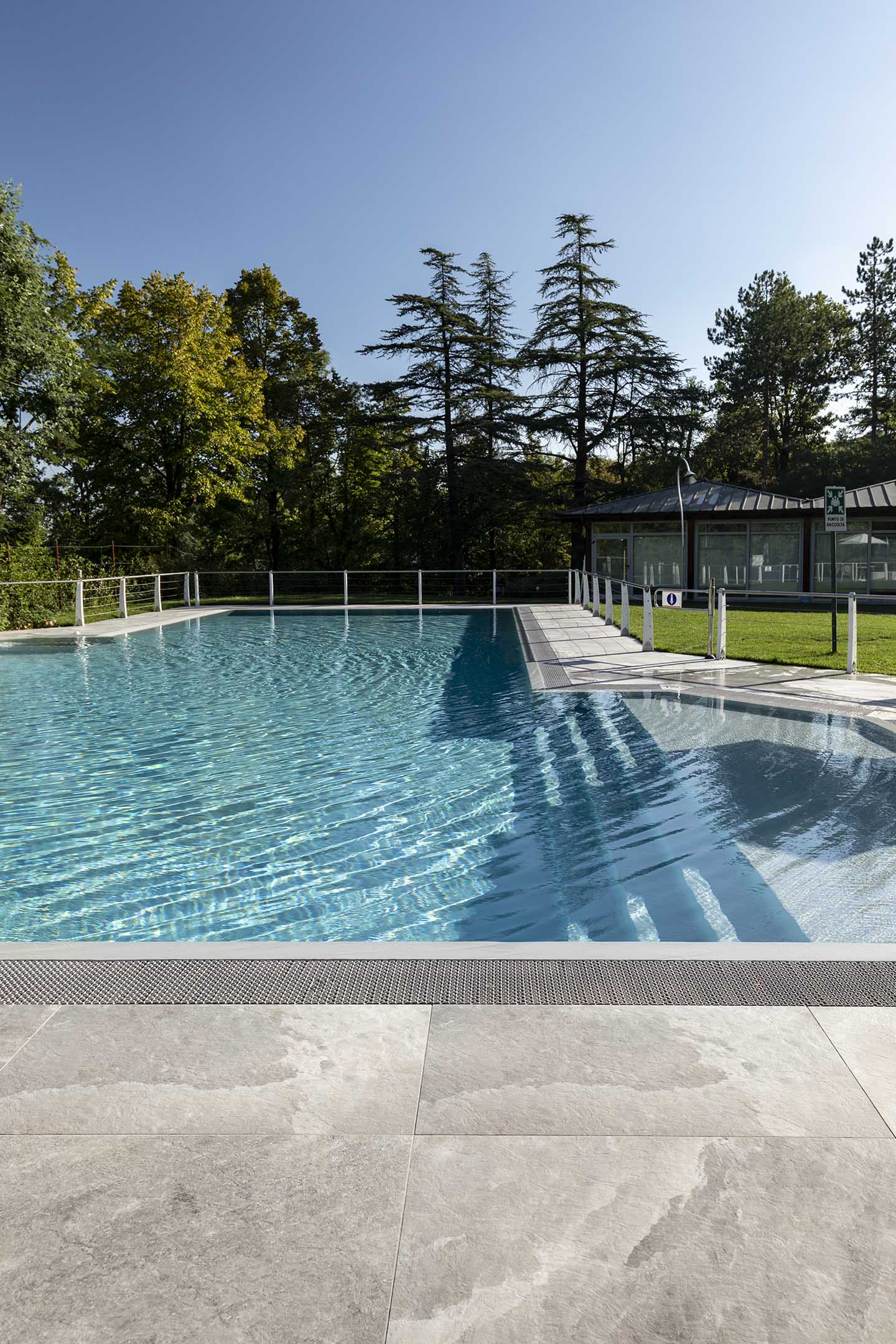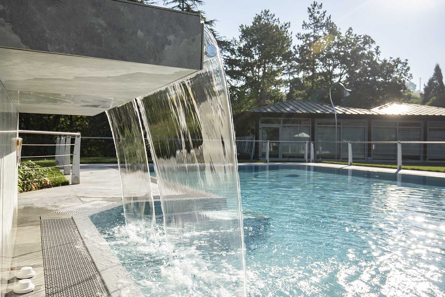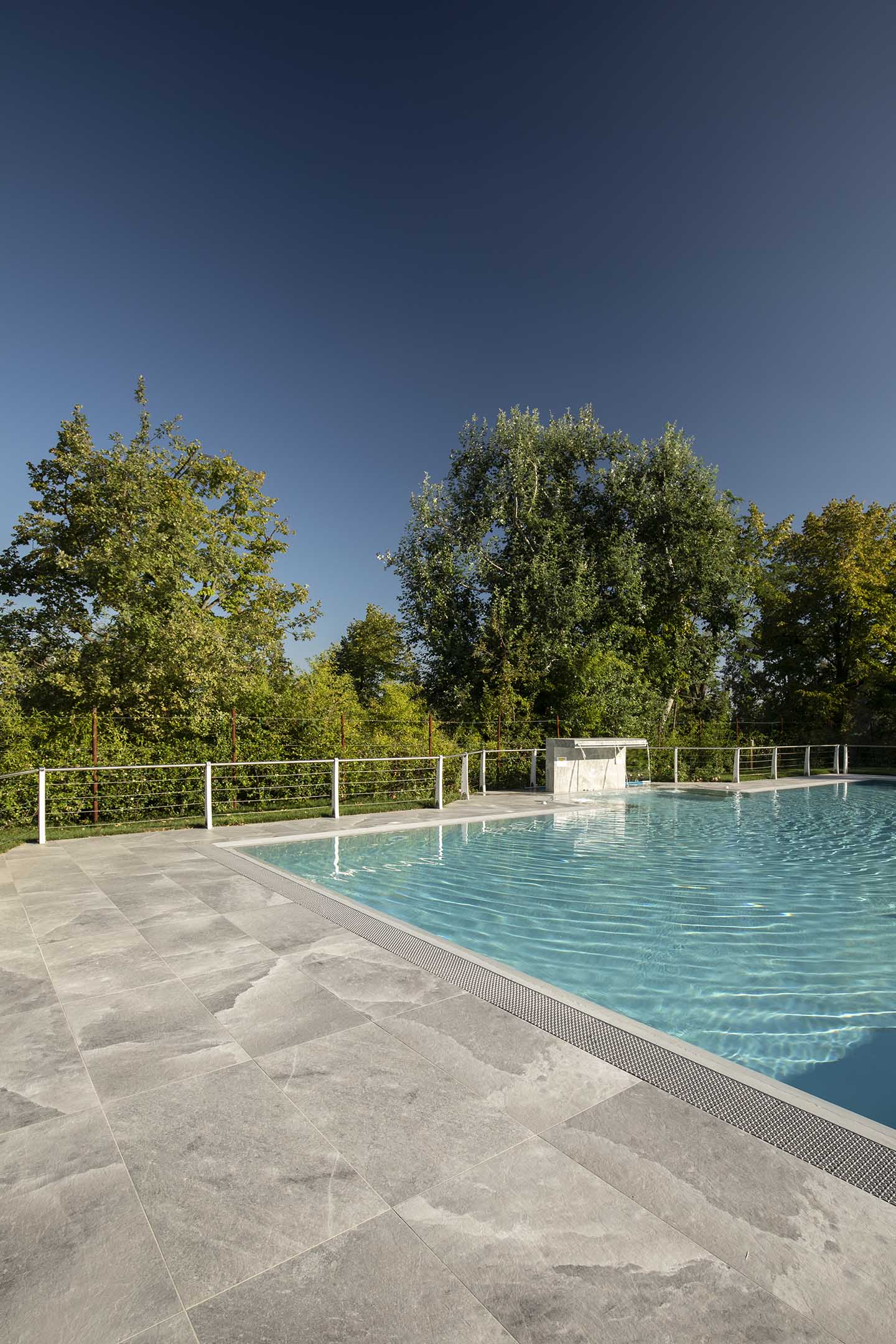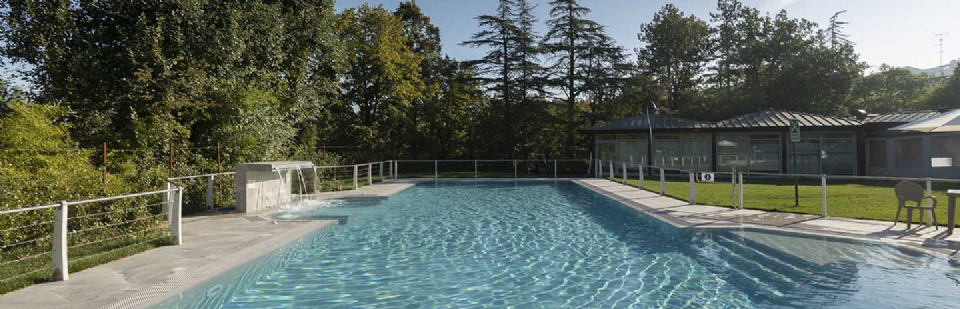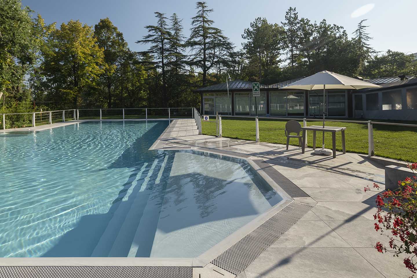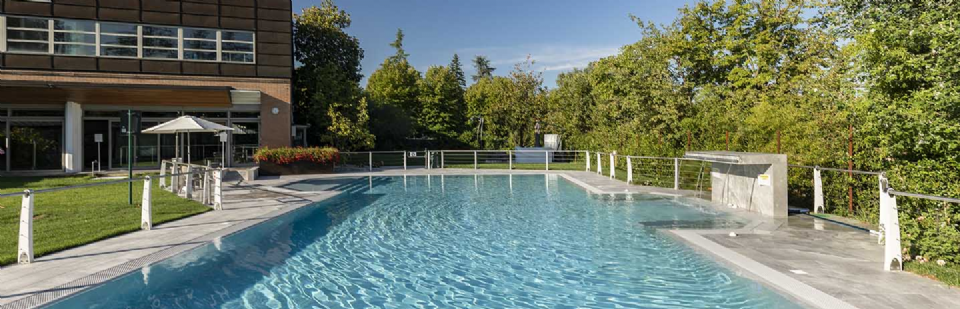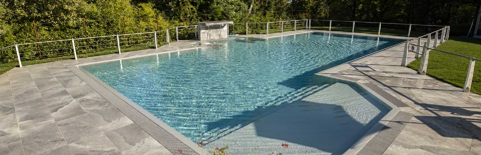 È notoriamente risaputo che il contatto con il sale produce numerosi benefici per il corpo, in genere aiuta ad espellere le tossine e migliora il funzionamento dei polmoni. Non solo, il contrasto cromatico tra le tonalità bianco-lucido del sale (sfumature di grigio, color salvia, tortora e sabbia) e il cielo produce un effetto estetico di rara bellezza, lo sa bene chi ha visitato paesaggi come il Salar di Uyuni, la pianura di sale in Bolivia. Paesaggi e ambienti naturali che hanno ispirato la nuova piscina del Centro Benessere Balnea, a Sassuolo in provincia di Modena, per la realizzazione della quale, sia all'interno della vasca che per la pavimentazione esterna, è stata scelta la linea di gres Rock Salt of Cerim di Florim (con moduli di 60x120 cm) ispirata proprio ai blocchi di sale che si estraggono dalle miniere. La texture del cristallo che cambia con le variazioni della luce naturale è un invito al contatto fisico, un'esperienza sensoriale che arricchisce la permanenza nella nuova piscina termale concepita proprio dai proprietari come un prolungamento della zona interna e allo stesso tempo come un momento di contatto estremamente fluido con la natura circostante: ”Le Terme della Salvarola sorgono su una verde collina ricca di vigneti a 3 km dal centro di Sassuolo. Le sue acque, si dice siano conosciute sin dai tempi dei Romani, utilizzate da Matilde di Canossa e chiamate divine dagli Estensi. Le Terme nacquero verso la fine dell'800 e rimasero aperte fino alla prima guerra mondiale. La famiglia degli attuali proprietari le riaprì nel 1958”, spiega il geometra Ercole Leonardi, titolare del centro, nonché ideatore del progetto della nuova piscina termale insieme all'azienda Bluezone che ha curato la costruzione dell'opera. ”Abbiamo sentito la necessità di una piscina termale estiva per elevare ulteriormente la qualità e la quantità dei servizi tutto l'anno e rendere più piacevole e confortevole il soggiorno termale, turistico, di business e sportivo”, precisa il geometra. La piscina è ideale per la fruizione durante il periodo estivo, l'acqua, infatti, presenta una temperatura ambiente di 28° e vi si accede attraverso un'ampia scala a gradoni che oltre ad essere molto scenografica permette l'accesso progressivo, tipico dei bacini idrici delle strutture wellness. ”Abbiamo sviluppato insieme ai tecnici un progetto che fosse ben inserito nel giardino, con ampi spazi per il solarium, in modo tale che le nuove volumetrie di fatto risultassero ben inserite nel contesto, salvaguardando le aree pertinenziali ricche di vegetazione, che nascondono la nuova piscina quasi totalmente alla vista se non si è a distanza ravvicinata. La piscina termale, inoltre, ha una profondità idonea per effettuare corsi di riattivazione psicofisica e acquagym, è dotata di sedute con idromassaggi, di una cascata a lame che si illumina di notte e di lettini con microfori per aeromassaggio che avvolge tutto il corpo”.