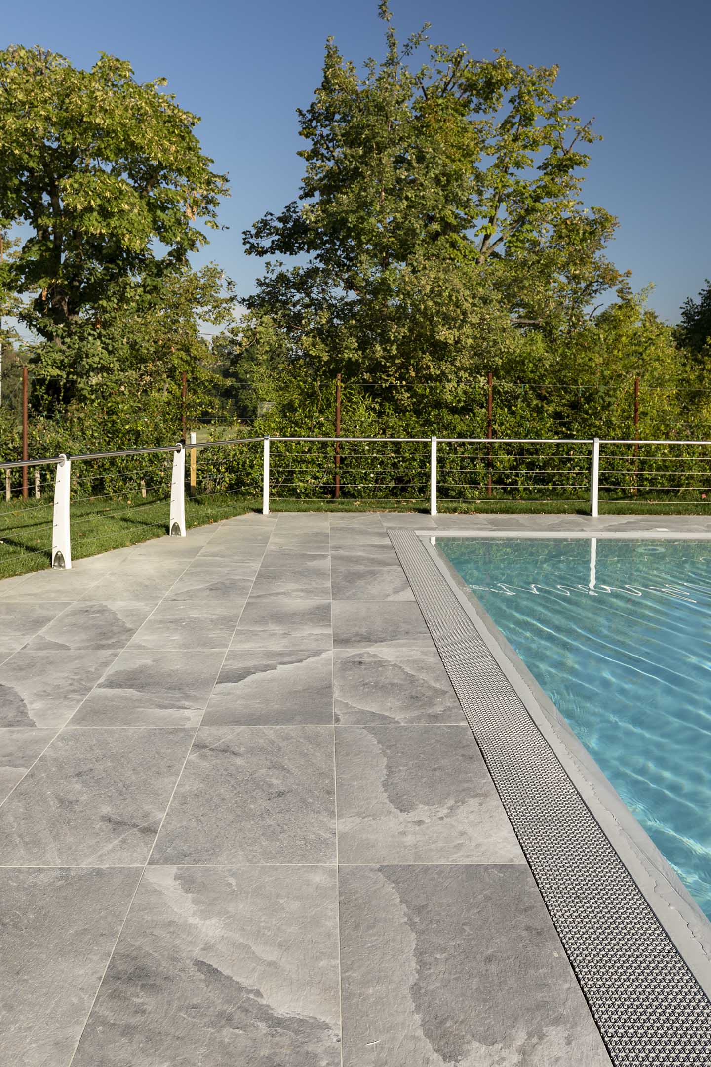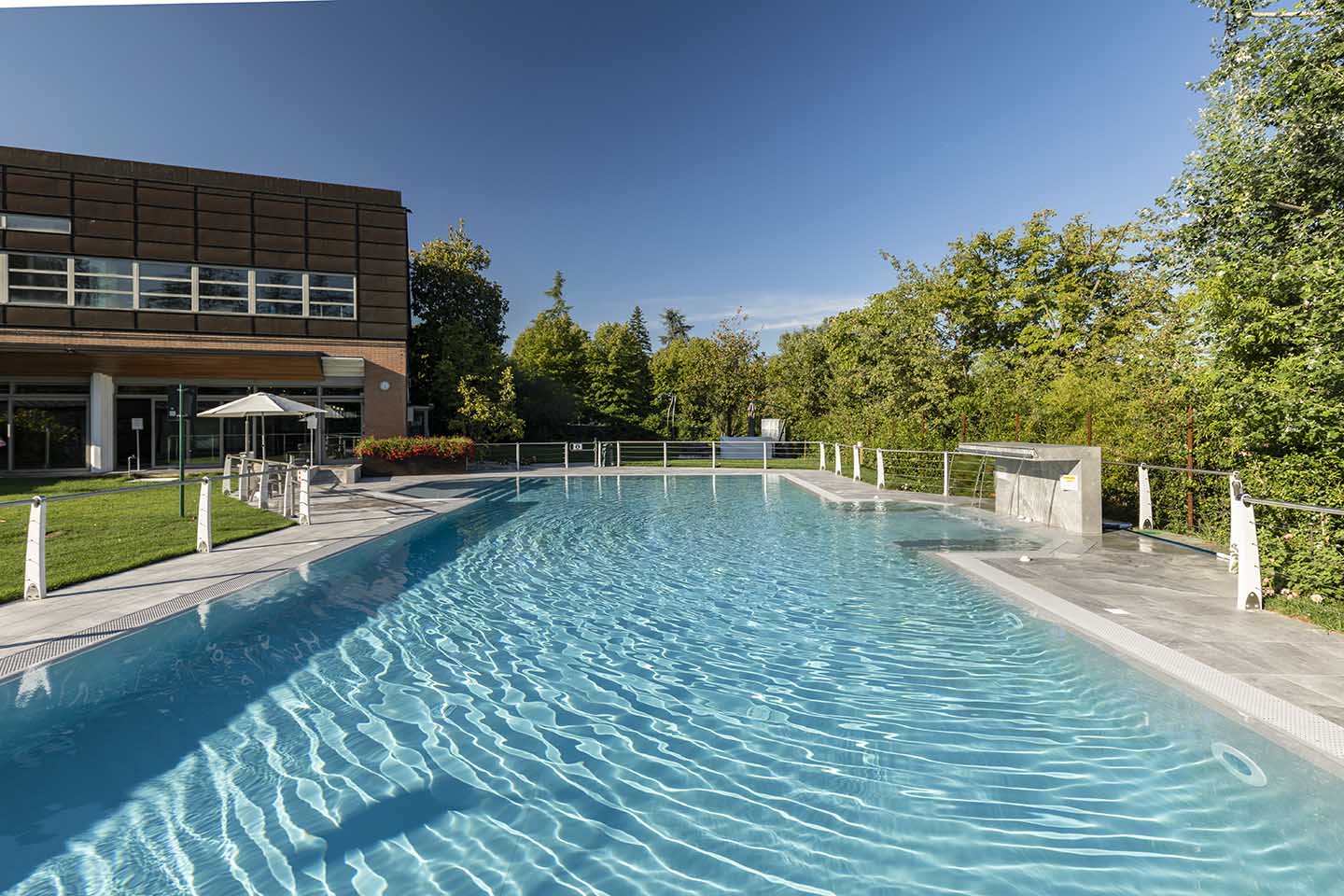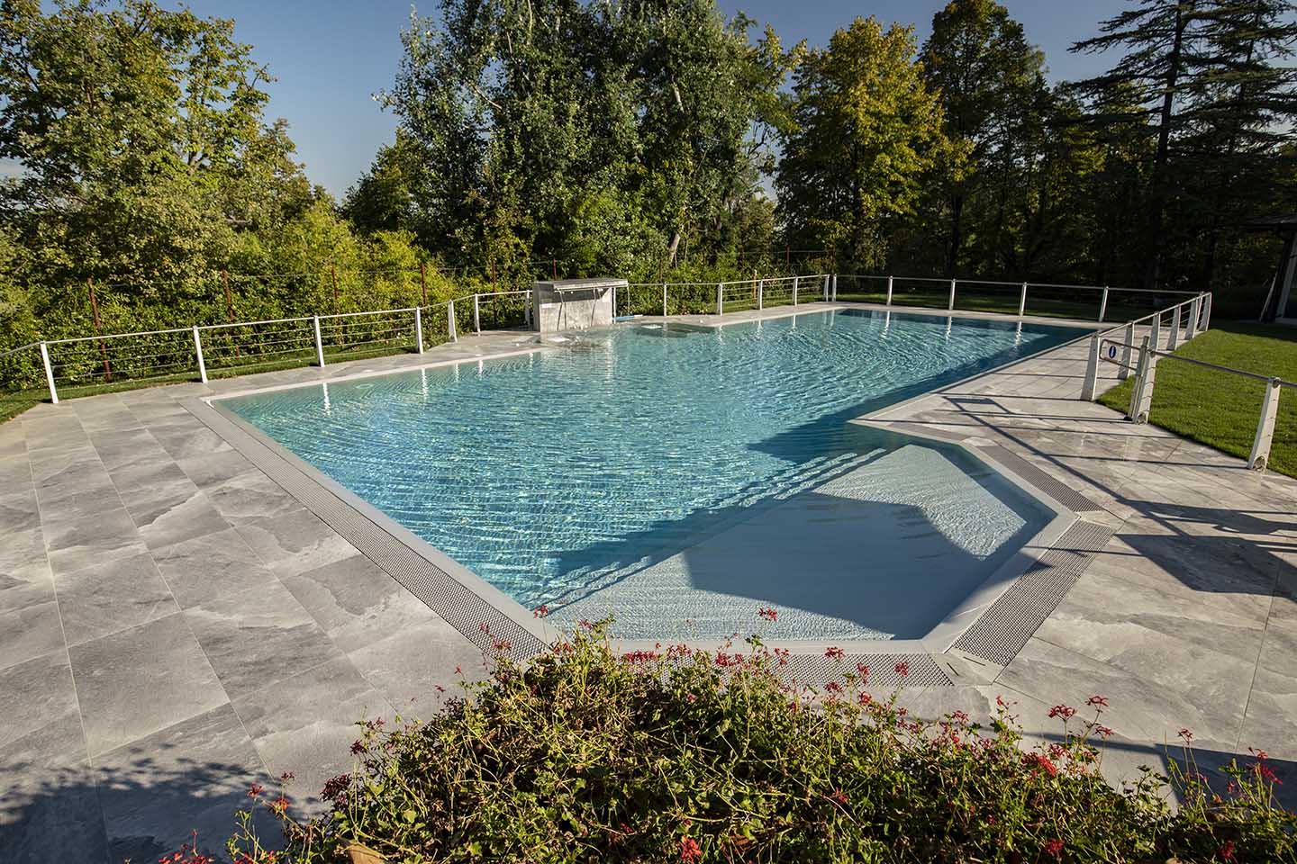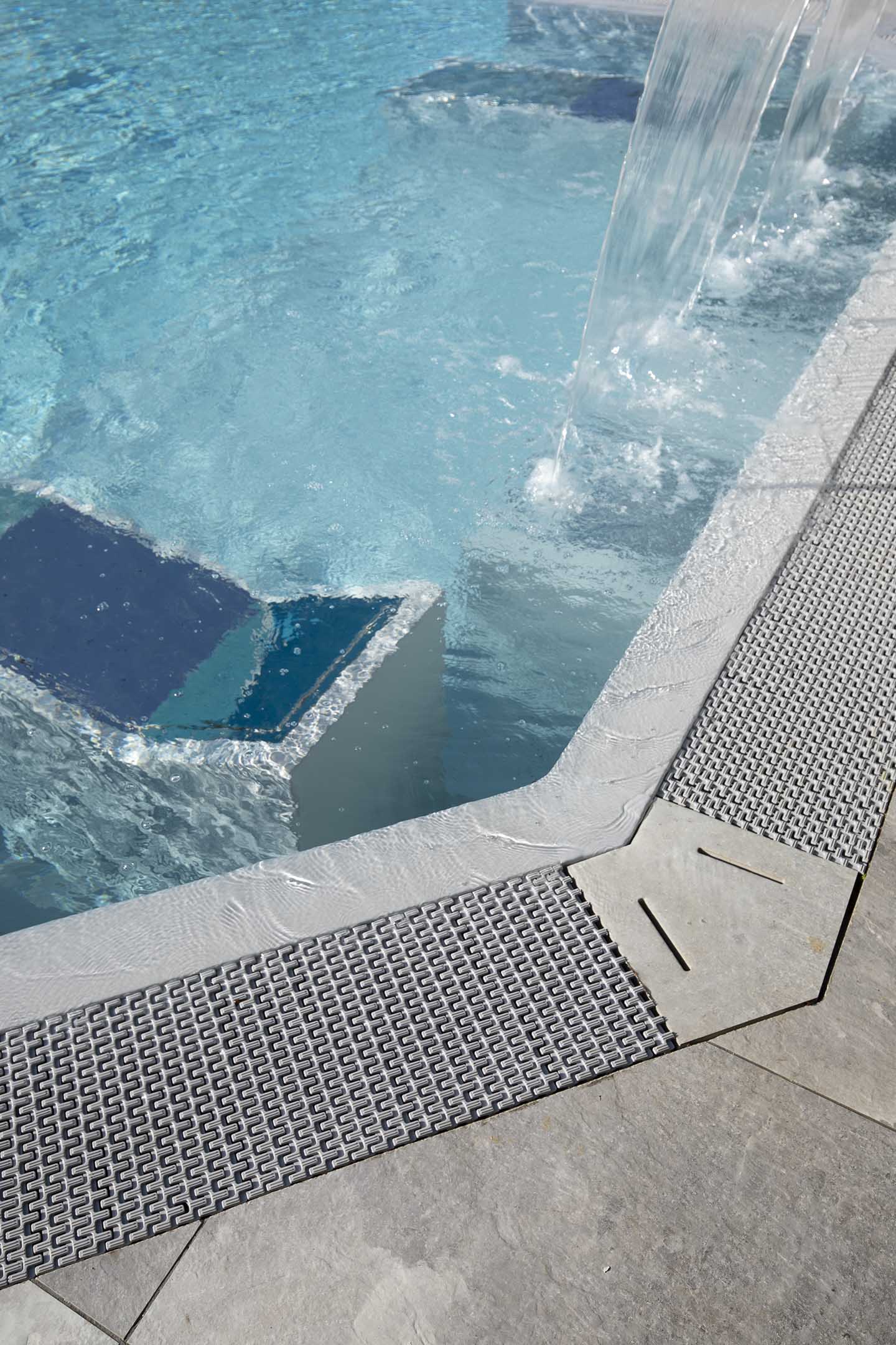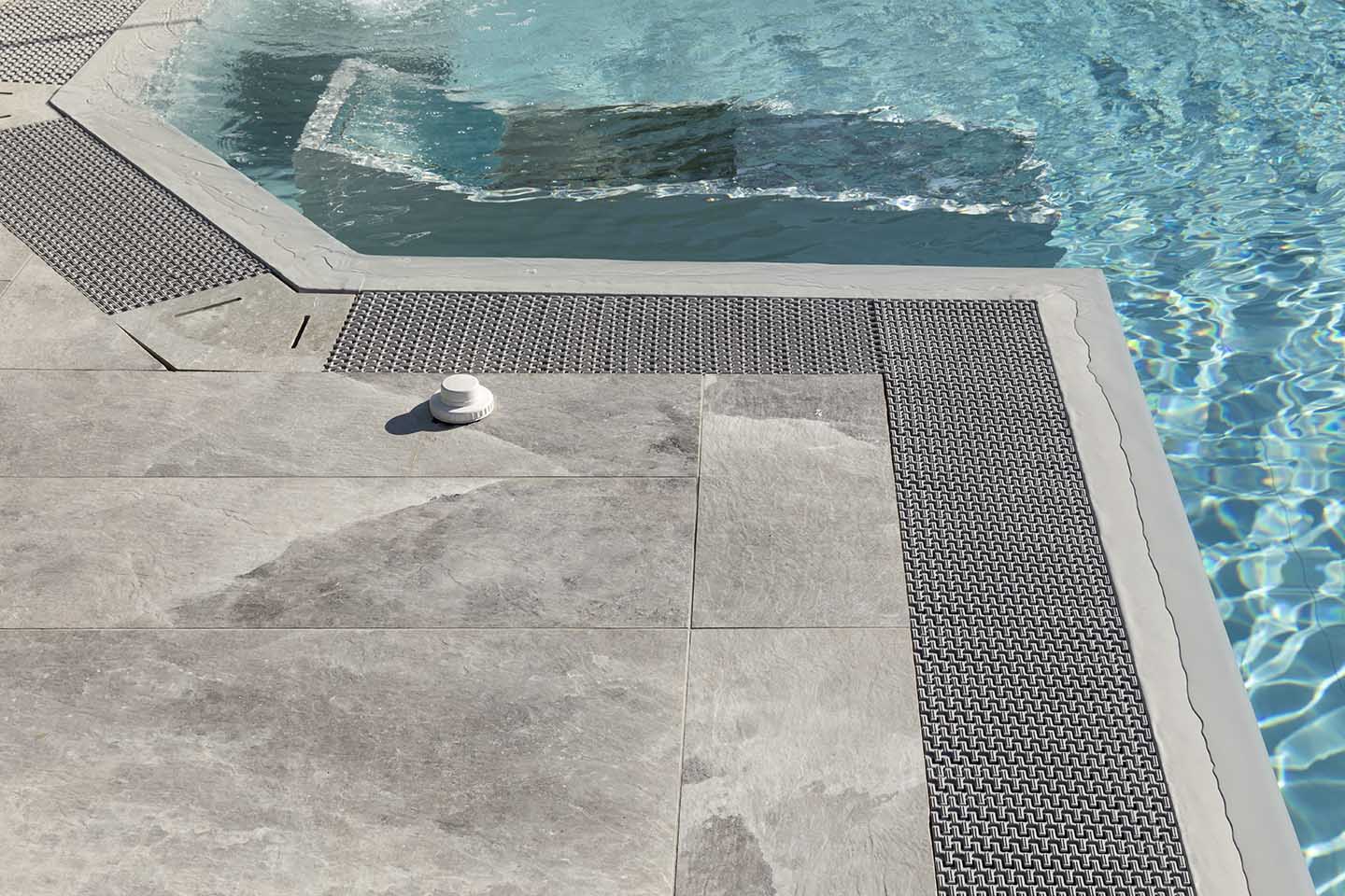 È notoriamente risaputo che il contatto con il sale produce numerosi benefici per il corpo, in genere aiuta ad espellere le tossine e migliora il funzionamento dei polmoni. Non solo, il contrasto cromatico tra le tonalità bianco-lucido del sale (sfumature di grigio, color salvia, tortora e sabbia) e il cielo produce un effetto estetico di rara bellezza, lo sa bene chi ha visitato paesaggi come il Salar di Uyuni, la pianura di sale in Bolivia. Paesaggi e ambienti naturali che hanno ispirato la nuova piscina del Centro Benessere Balnea, a Sassuolo in provincia di Modena, per la realizzazione della quale, sia all'interno della vasca che per la pavimentazione esterna, è stata scelta la linea di gres Rock Salt of Cerim di Florim (con moduli di 60x120 cm) ispirata proprio ai blocchi di sale che si estraggono dalle miniere. La texture del cristallo che cambia con le variazioni della luce naturale è un invito al contatto fisico, un'esperienza sensoriale che arricchisce la permanenza nella nuova piscina termale concepita proprio dai proprietari come un prolungamento della zona interna e allo stesso tempo come un momento di contatto estremamente fluido con la natura circostante: ”Le Terme della Salvarola sorgono su una verde collina ricca di vigneti a 3 km dal centro di Sassuolo. Le sue acque, si dice siano conosciute sin dai tempi dei Romani, utilizzate da Matilde di Canossa e chiamate divine dagli Estensi. Le Terme nacquero verso la fine dell'800 e rimasero aperte fino alla prima guerra mondiale. La famiglia degli attuali proprietari le riaprì nel 1958”, spiega il geometra Ercole Leonardi, titolare del centro, nonché ideatore del progetto della nuova piscina termale insieme all'azienda Bluezone che ha curato la costruzione dell'opera. ”Abbiamo sentito la necessità di una piscina termale estiva per elevare ulteriormente la qualità e la quantità dei servizi tutto l'anno e rendere più piacevole e confortevole il soggiorno termale, turistico, di business e sportivo”, precisa il geometra. La piscina è ideale per la fruizione durante il periodo estivo, l'acqua, infatti, presenta una temperatura ambiente di 28° e vi si accede attraverso un'ampia scala a gradoni che oltre ad essere molto scenografica permette l'accesso progressivo, tipico dei bacini idrici delle strutture wellness. ”Abbiamo sviluppato insieme ai tecnici un progetto che fosse ben inserito nel giardino, con ampi spazi per il solarium, in modo tale che le nuove volumetrie di fatto risultassero ben inserite nel contesto, salvaguardando le aree pertinenziali ricche di vegetazione, che nascondono la nuova piscina quasi totalmente alla vista se non si è a distanza ravvicinata. La piscina termale, inoltre, ha una profondità idonea per effettuare corsi di riattivazione psicofisica e acquagym, è dotata di sedute con idromassaggi, di una cascata a lame che si illumina di notte e di lettini con microfori per aeromassaggio che avvolge tutto il corpo”.