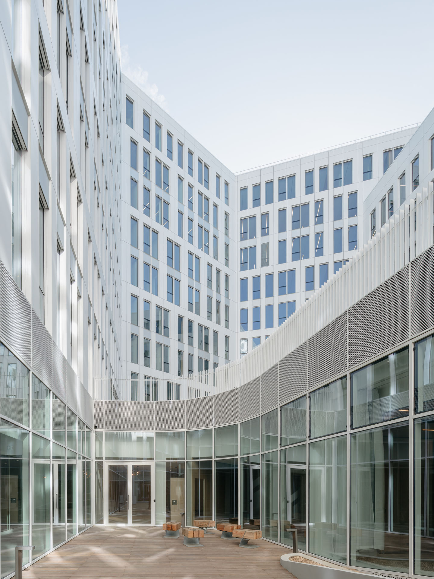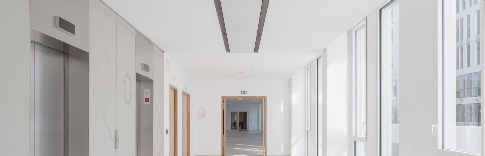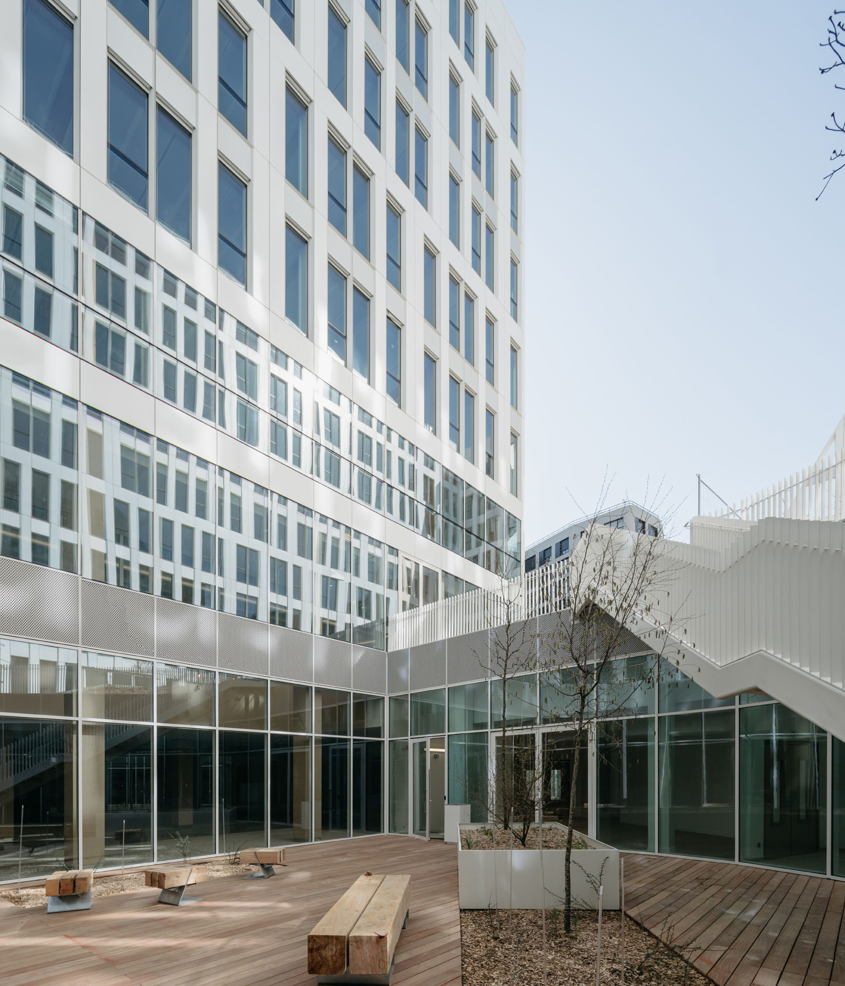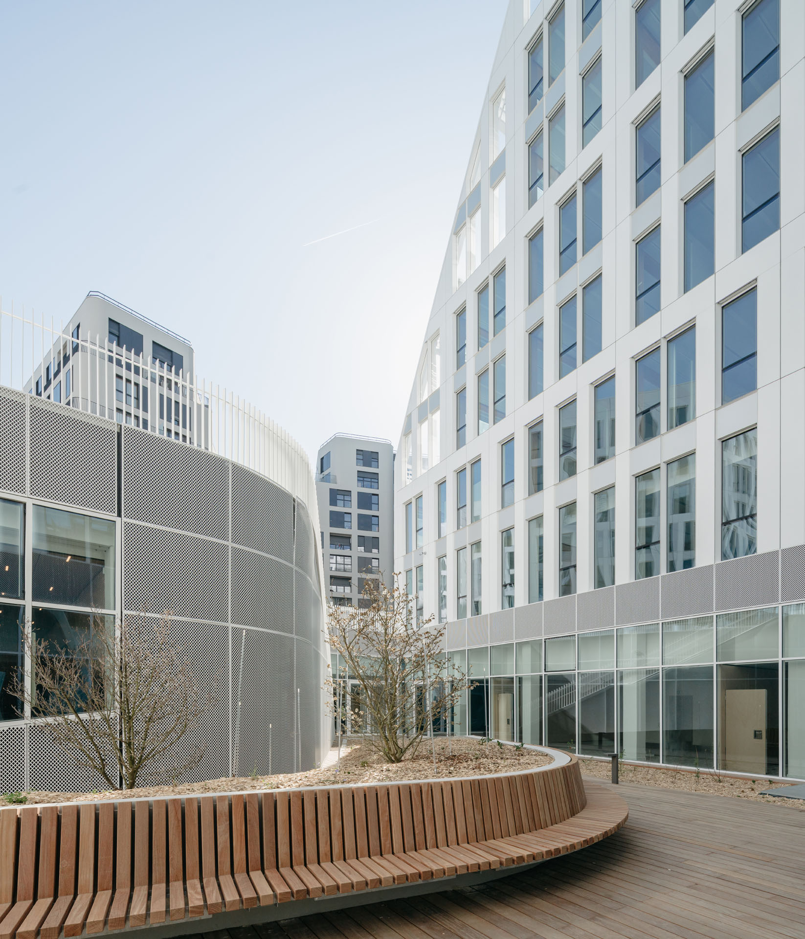 Lasciata la Tour Adria a La Défense il gigante francese Technip Energies, società leader nel settore energetico, si è trasferita poco distante, nel nuovo campus denominato Origine e inaugurato nel 2021. Un complesso che unisce uffici, spazi a destinazione residenziale e commerciale frutto della collaborazione tra gli studi parigini Maud Caubet Architectes e Quadri Fiore Architecture. «Con Origine vogliamo riconciliare natura e architettura», hanno dichiarato i progettisti che nel disegnare il nuovo edificio ammettono d'essersi ispirati alle forme delle scogliere. Il nuovo quartier generale di Technip Energies consta in tutto di 70.000 metri quadrati suddivisi in due grandi blocchi di otto piani collegati da passerelle aeree e giardini. Le facciate esterne sono ritmate da finestrature e superfici in gres porcellanato di 14 mm. nella variante Clay, il bianco panna della collezione Limestone, di Cotto d'Este che veicola lo splendore di fondali marini stratificato, sedimentato fissato in pietra dal paziente lavoro delle acque e del tempo. Si tratta di un gres porcellanato di 14 mm, dunque resistente ai carichi pesanti, agli scarti di temperatura, agli agenti chimici ed antisdrucciolo.